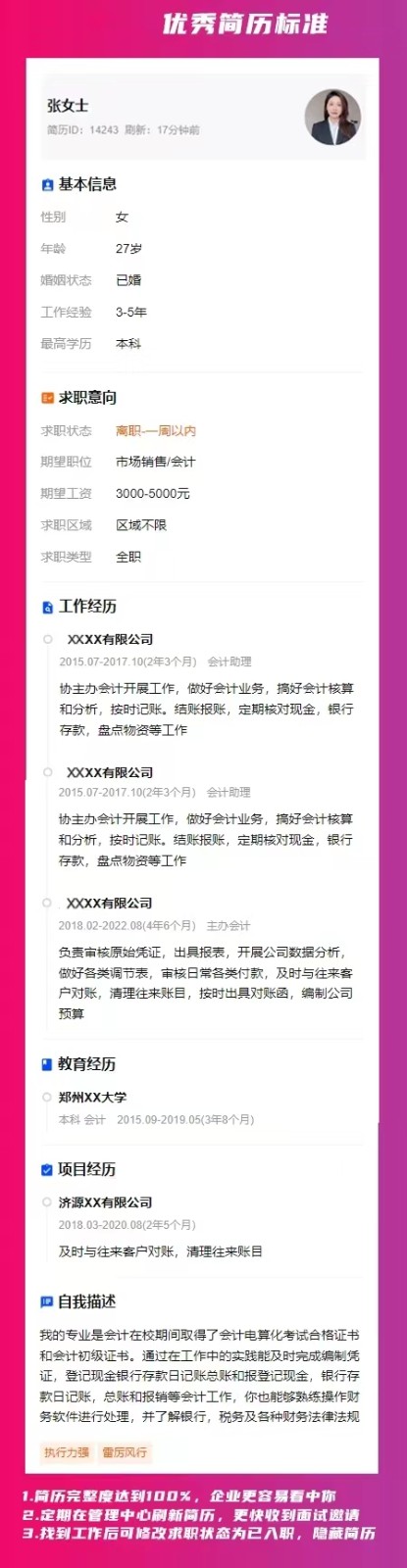 为了帮助人才更好的展示自己,更快速找到工作,生活通人才网发布优秀简历标准如下: